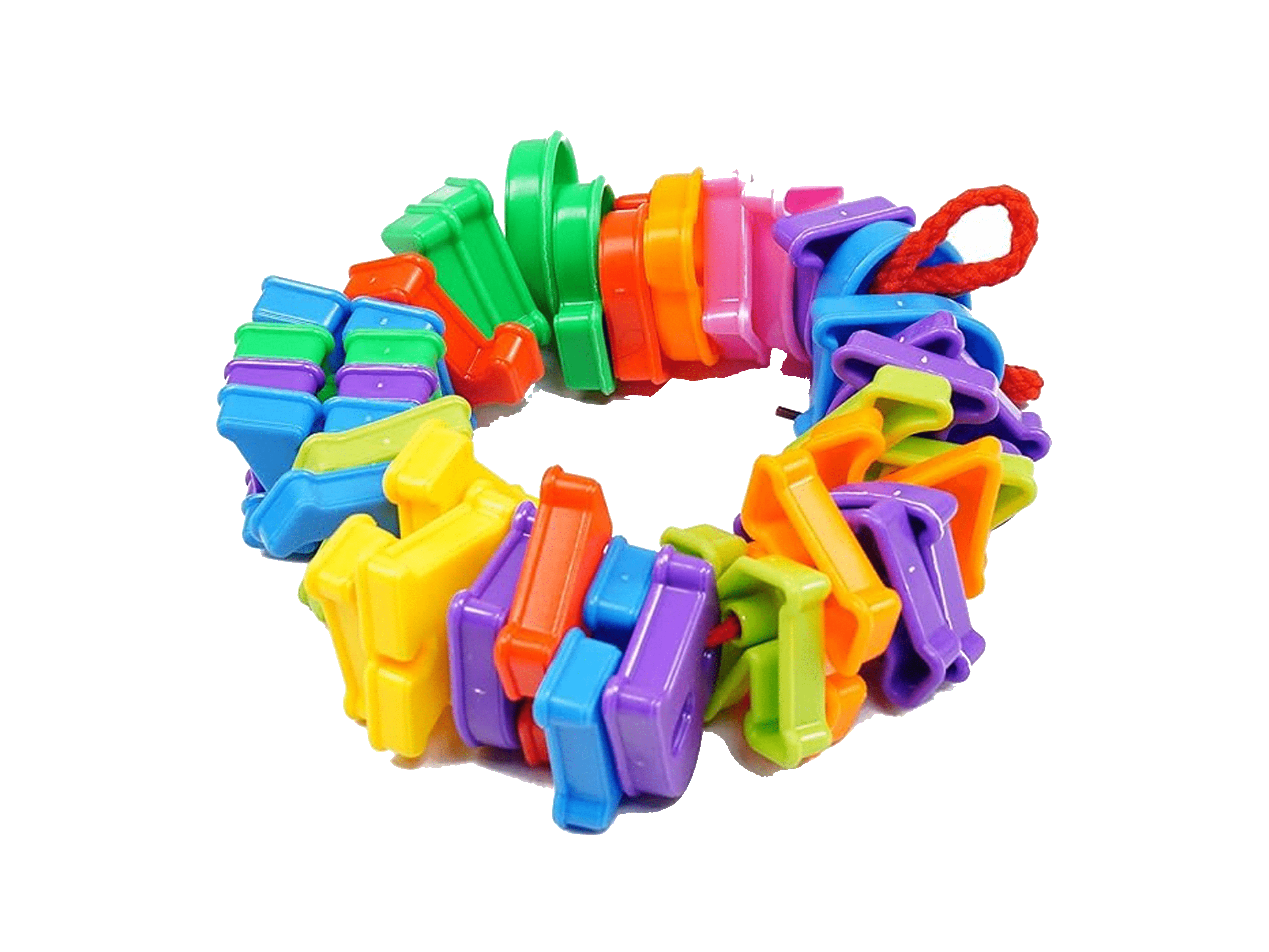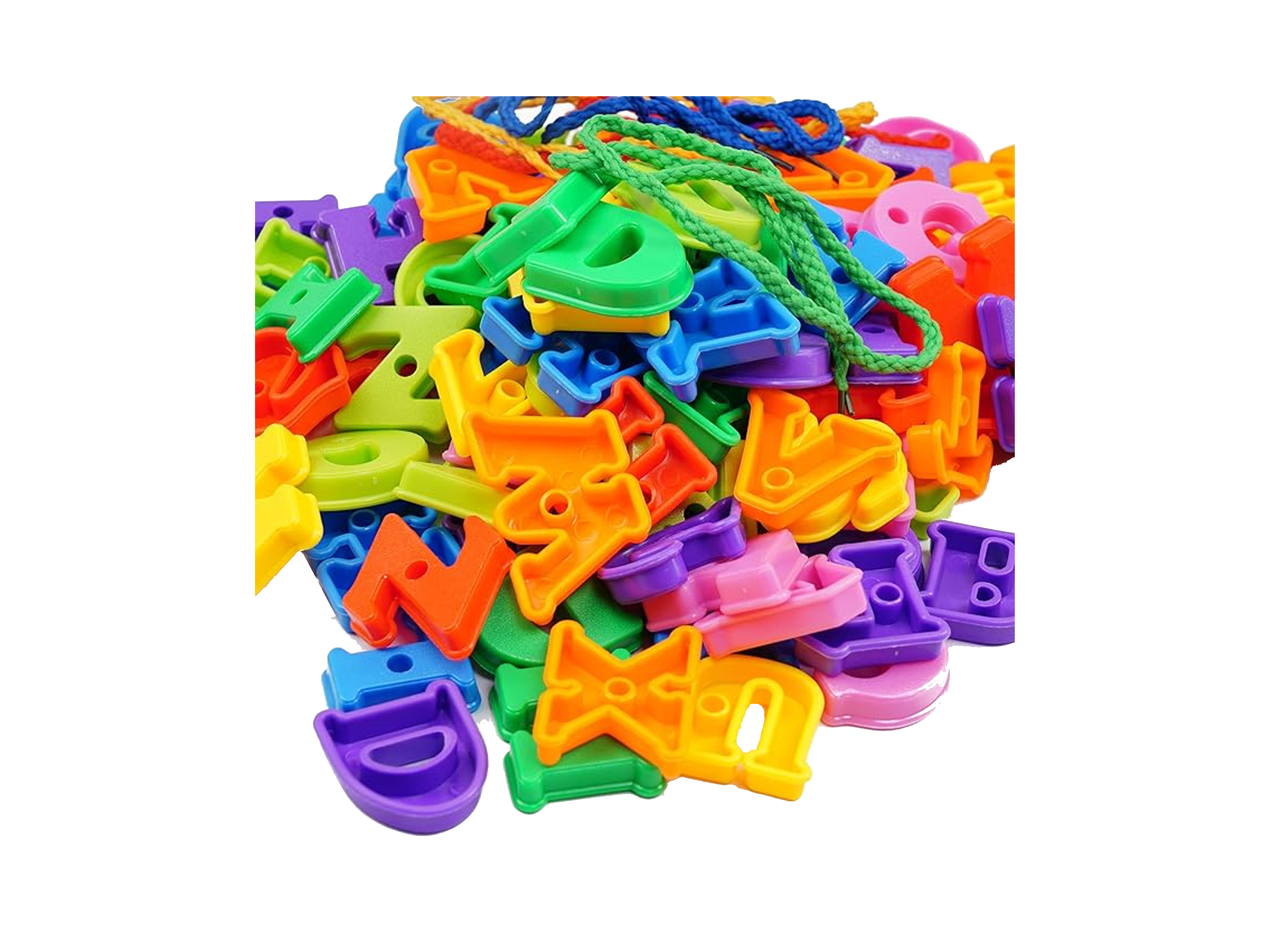 The letters are usually brightly colored and durable, making them attractive and safe for young children. They are often in uppercase form, allowing children to recognize and distinguish between different letter shapes. Children can engage in various activities with lacing alphabet plastic toys. Here's a typical play scenario –