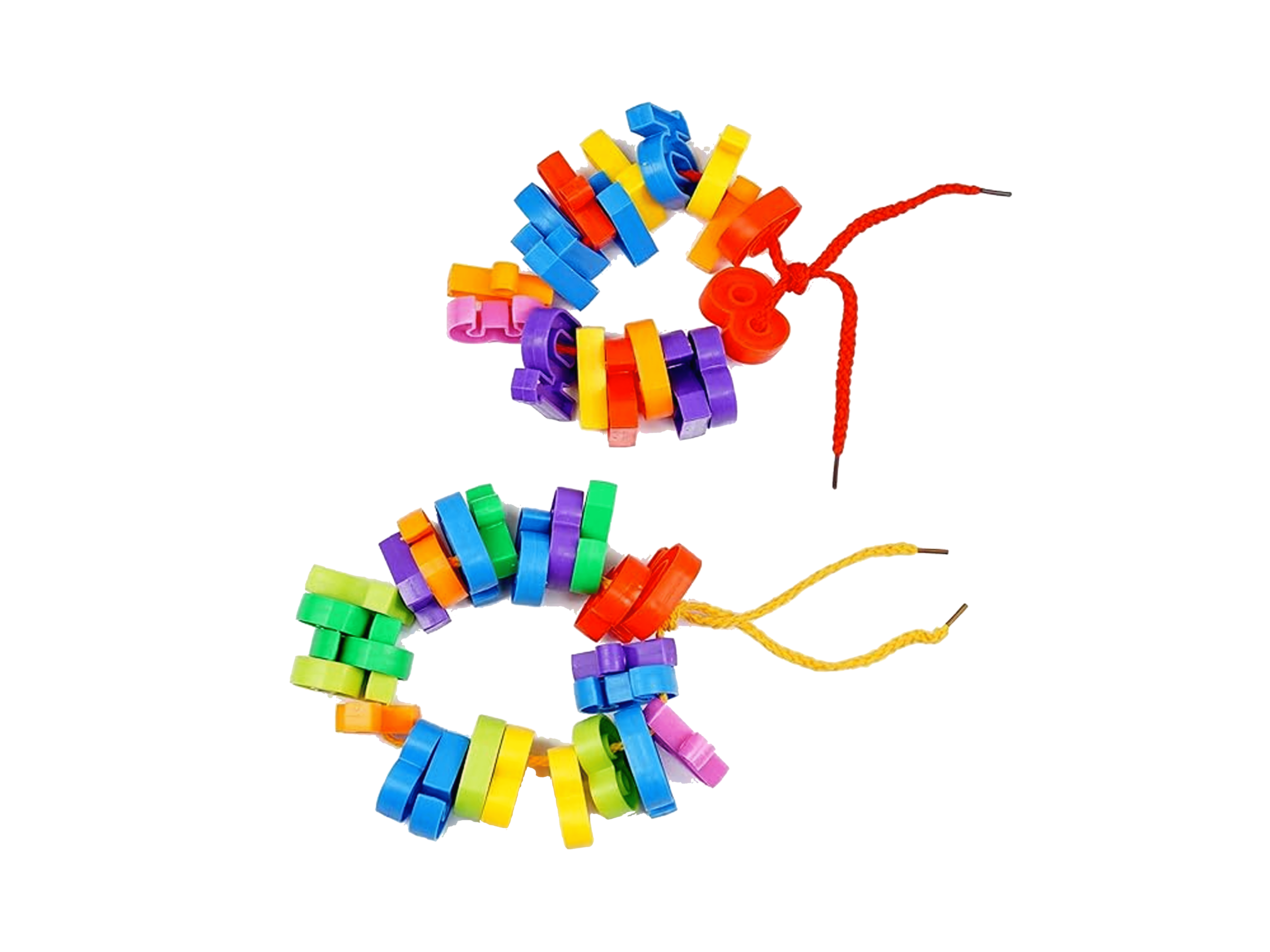 Lacing numbers plastic toys come with laces. The laces are threaded through the holes in the numbers, allowing children to practice their hand-eye coordination and develop their dexterity as they thread the numbers in numerical order or create patterns.