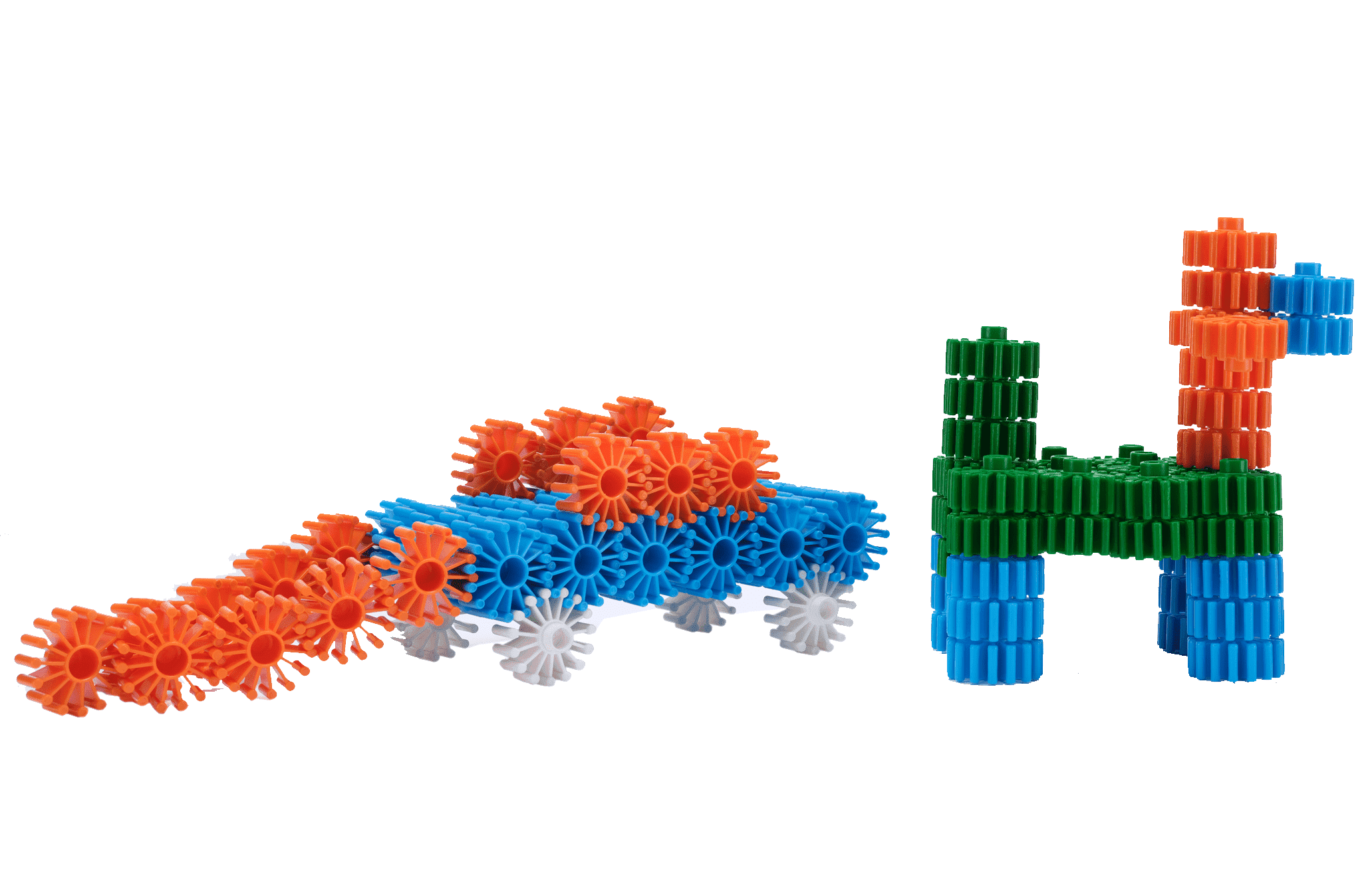 With these gear elements, children can create complex mechanical systems and explore the concepts of cause and effect, motion, and clockwise and anti-clockwise directions. By connecting gears they can construct structures that incorporate moving parts, like spinning wheels, rotating arms & interconnected gears that transfer motion.