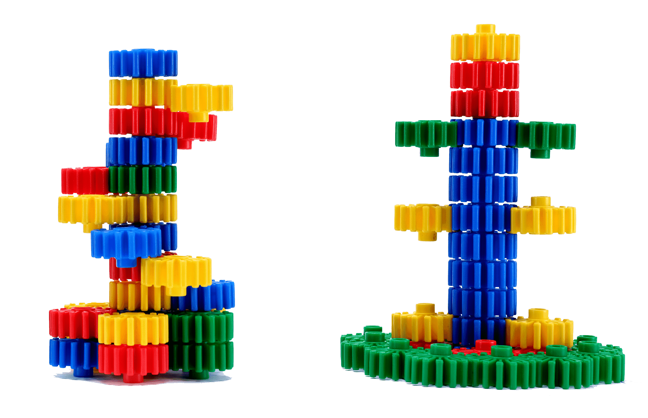 With these gear elements, children can create complex mechanical systems and explore the concepts of cause and effect, motion, and clockwise and anti-clockwise directions. By connecting gears they can construct structures that incorporate moving parts, like spinning wheels, rotating arms & interconnected gears that transfer motion.